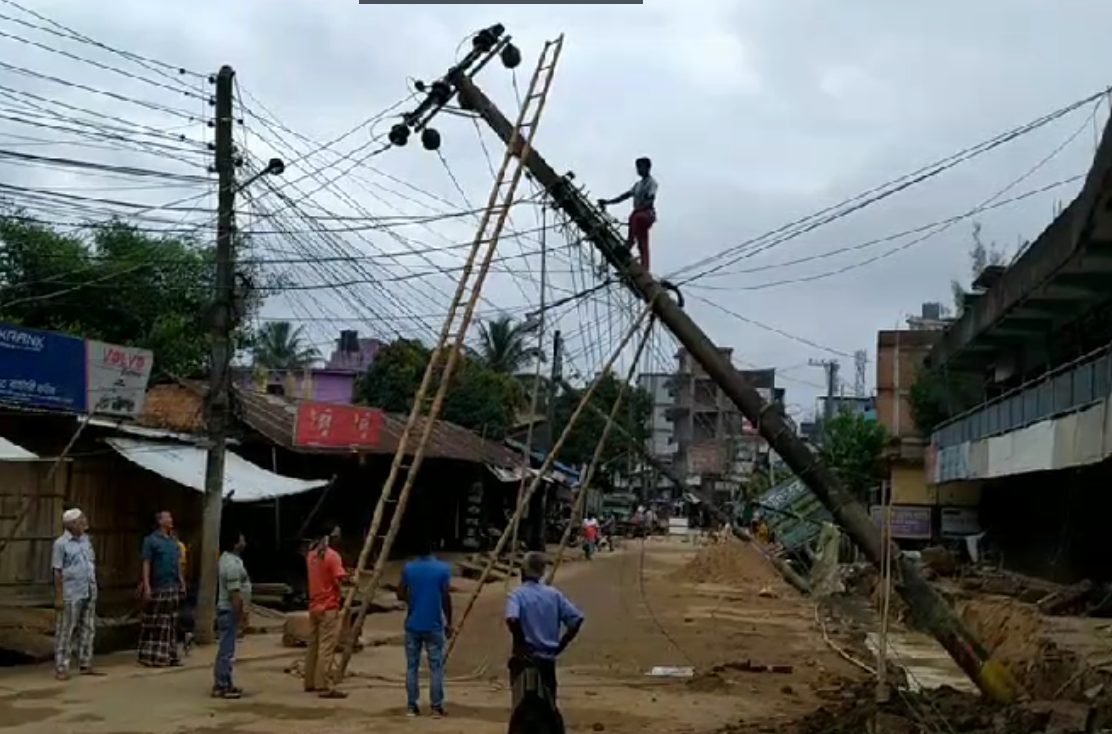 খাগড়াছড়িতে বৈদ্যুতিক খুঁটি না সরিয়ে ড্রেন নির্মাণ