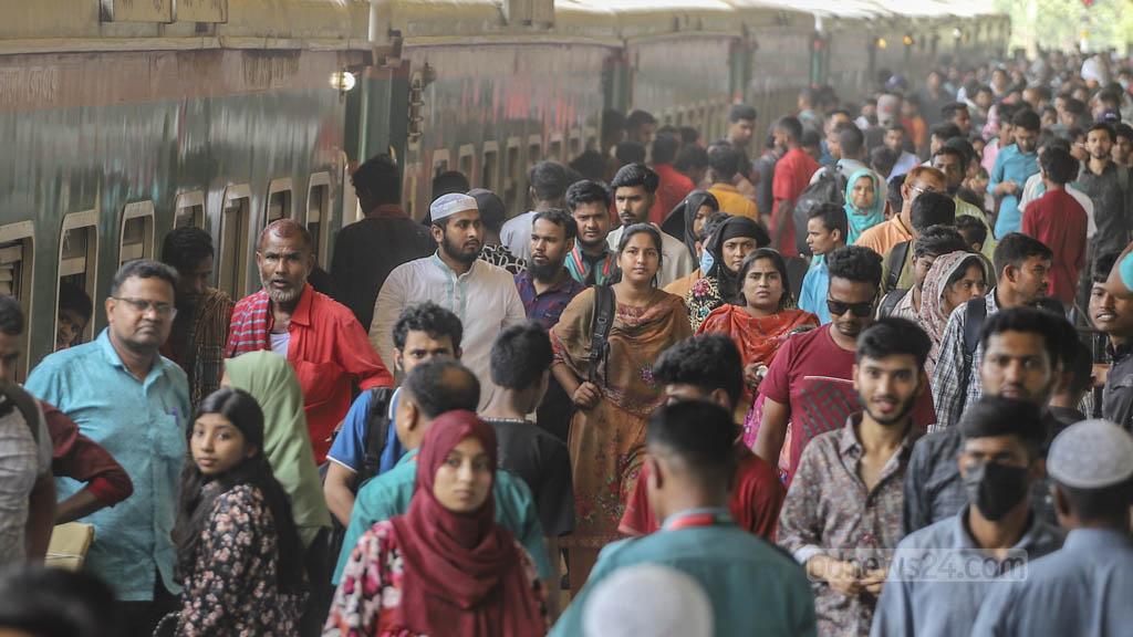 টিকেট কাটার তথ্যেরভিত্তিতে তারা বলেন, রবি ও সোমবারও এই ভিড় অব্যাহত থাকবে।ওয়ার্ল্ড পপুলেশন রিভিউয়ের হিসাবে, ঢাকার জনসংখ্যা এখন সোয়া দুই কোটির মত। এর মধ্যে এক কোটির বেশি মানুষ ঈদে অন্য কোনো জেলায় যান বলে ধারণা করা হয়।৩১ মার্চ ঈদুল ফিতর ধরে আগেই ছুটি ঘোষণা করেছিল সরকার। এর আগে-পরে (২৯ ও ৩০ মার্চ এবং ১ ও ২ এপ্রিল) চার দিন ছুটি দেওয়া হয়েছিল নির্বাহী আদেশে।